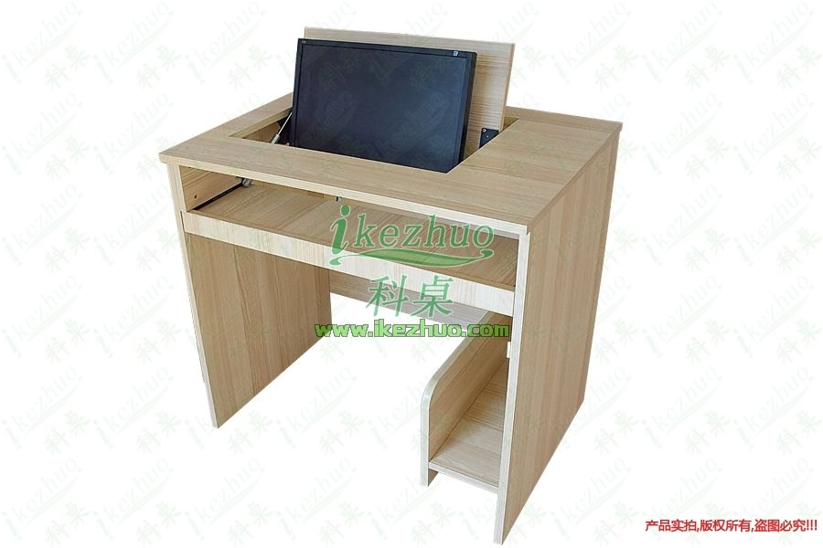 當需要使用顯示器時輕按前端桌面板隱藏在桌子內(nèi)部的顯示器會自動從桌子下面升到桌面翻轉(zhuǎn)到合適角度。當不使用顯示器時,可手動按下顯示器翻蓋面板至桌面平整,顯示器自動鎖住隱藏在桌子內(nèi)與桌面保持平整一致。起到防塵,防盜,保持桌面平整美觀。使用方便,手動控制,翻轉(zhuǎn)自如。